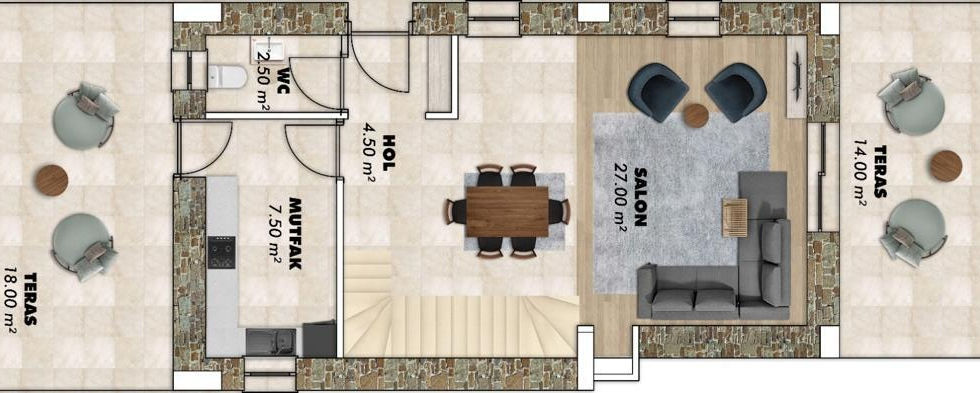 - 100m2 bahçe kullanım alanı